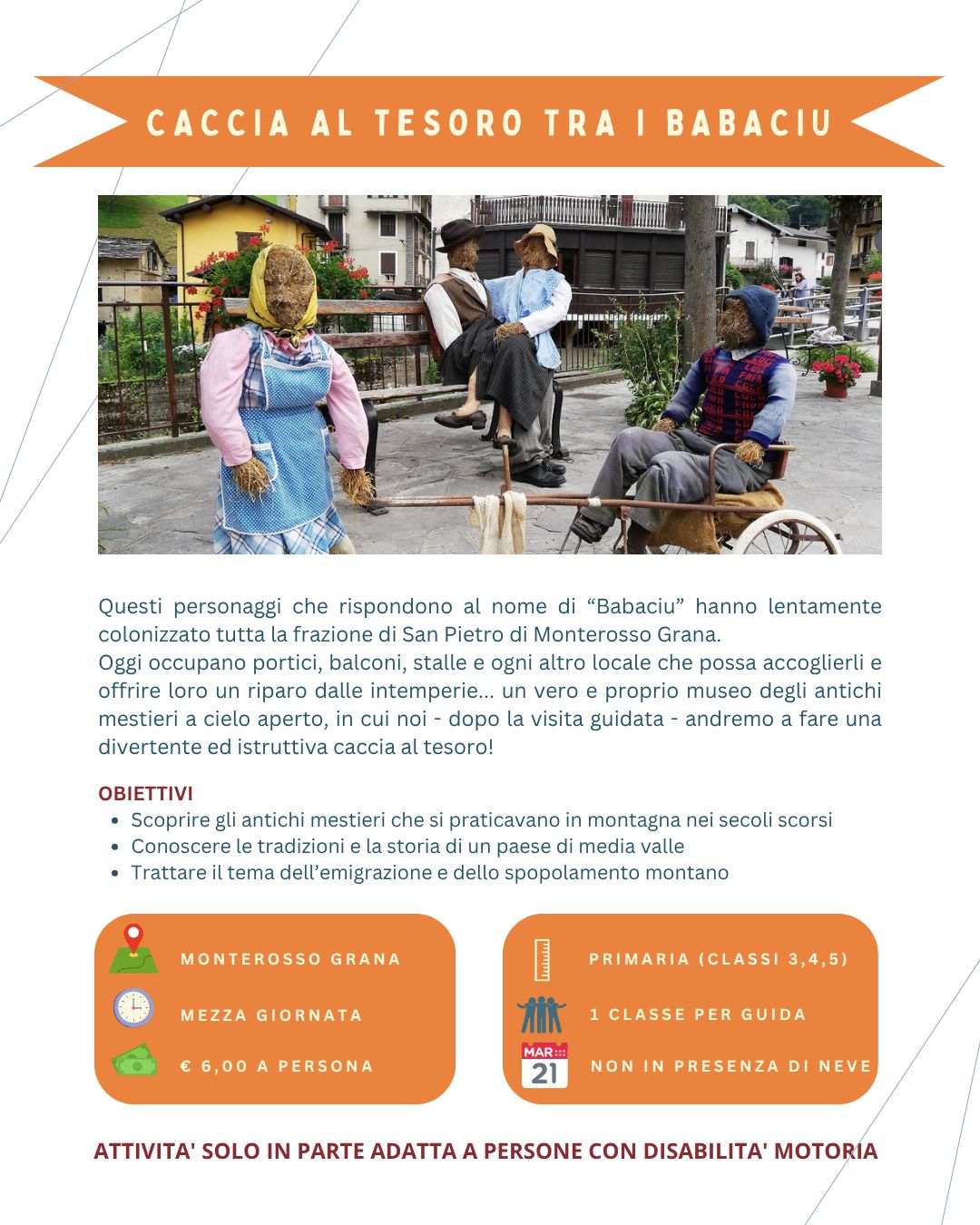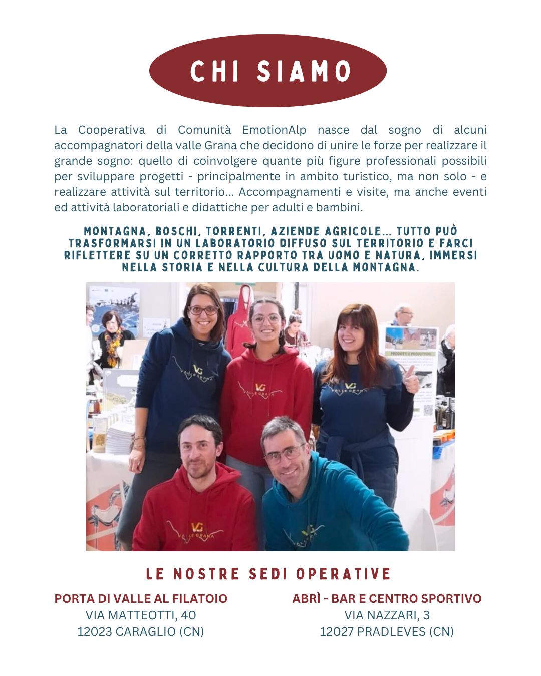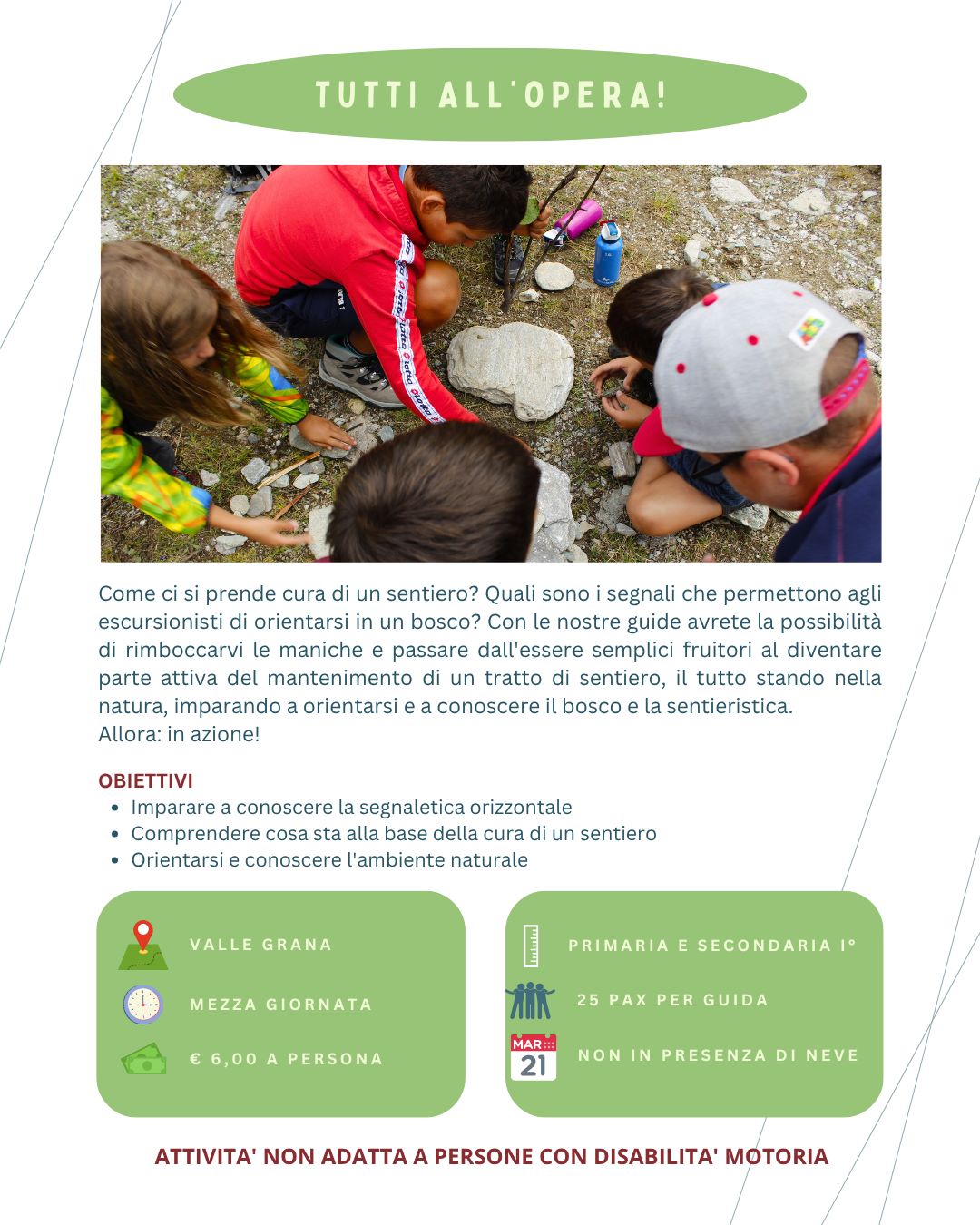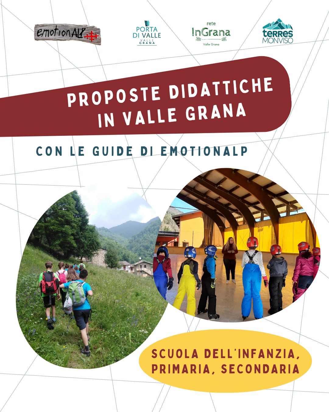 Oggi, diventati cittadini valligiani per scelta e guide per professione, vorremmo proporre ai nostri amici più piccoli la possibilità di scoprire questo territorio, spesso poco conosciuto, ma che sa trasformarsi in un eccezionale laboratorio di scoperte.
