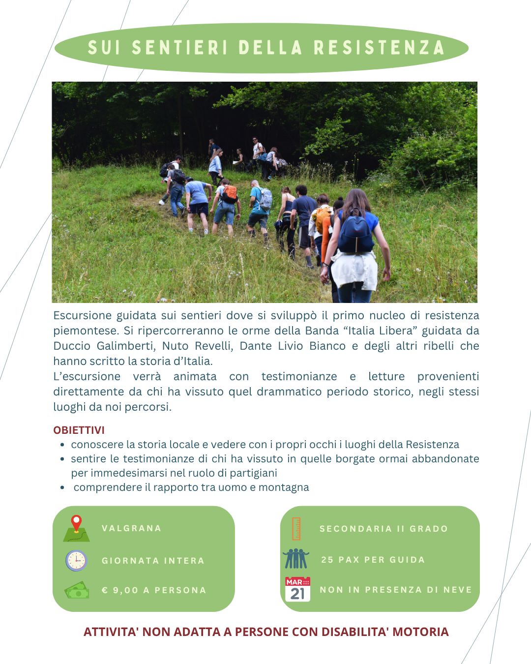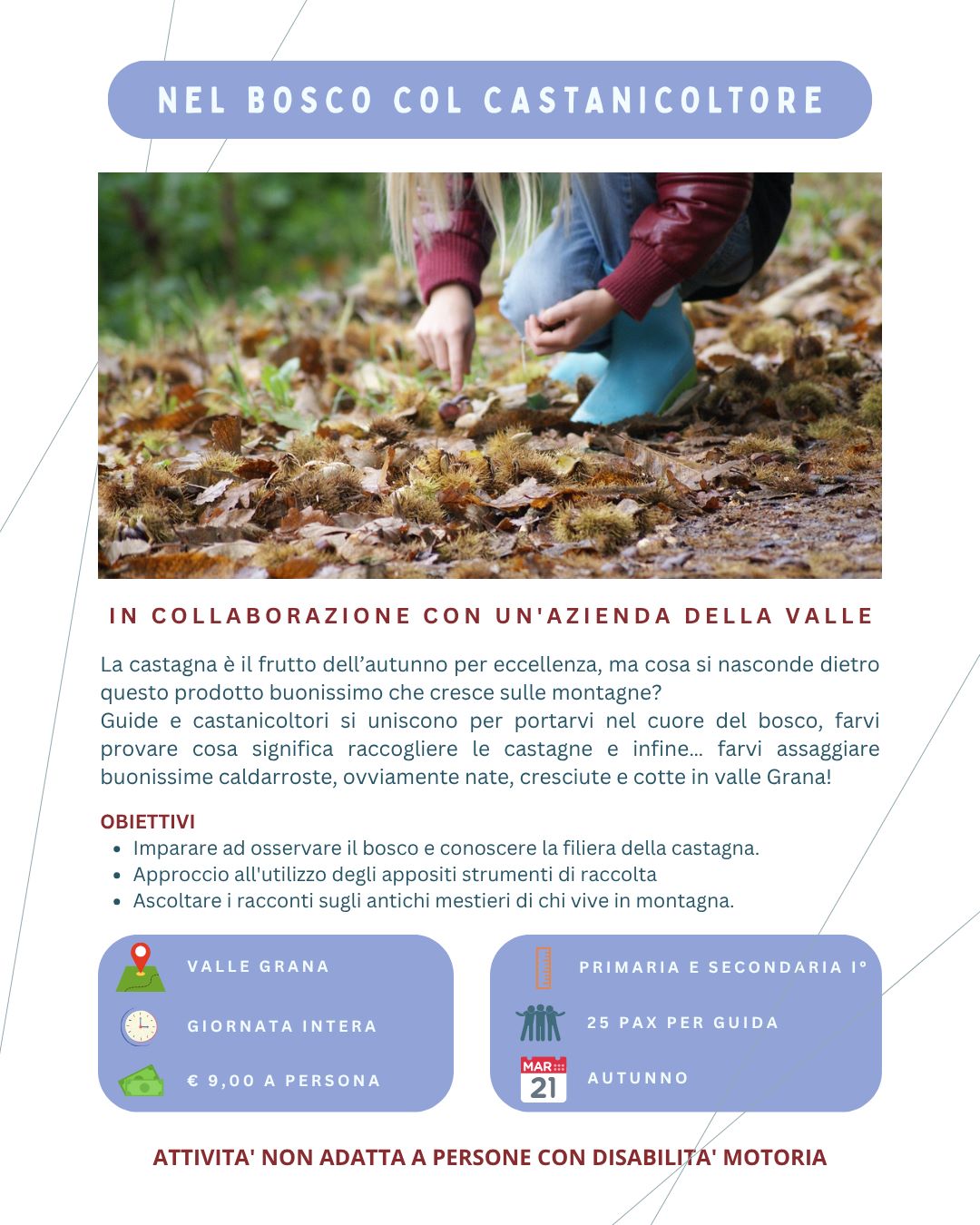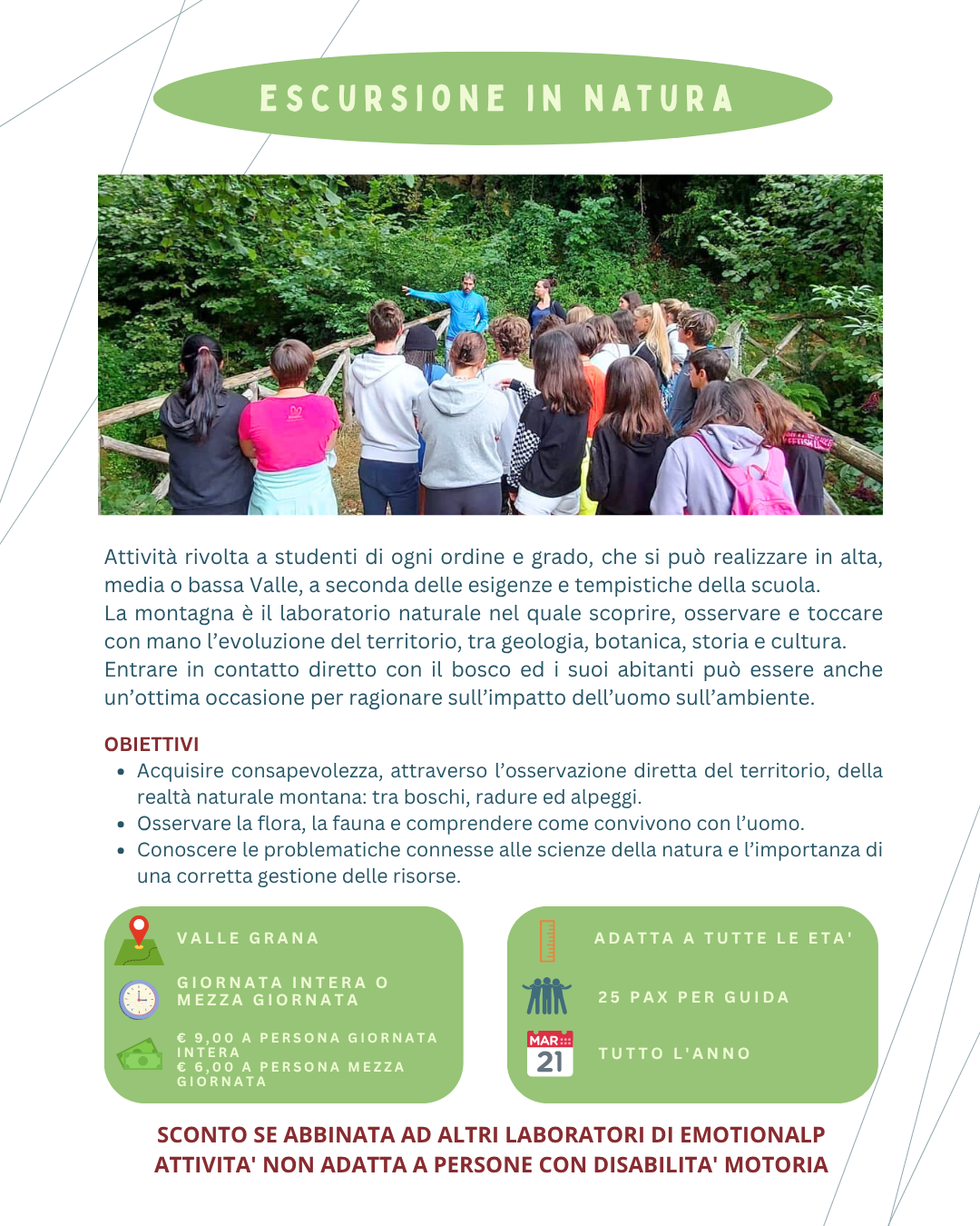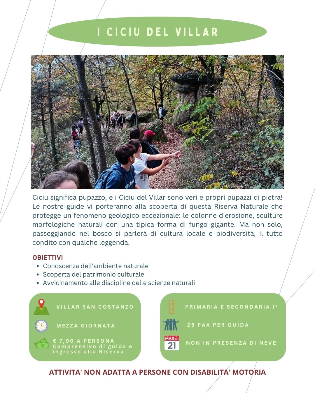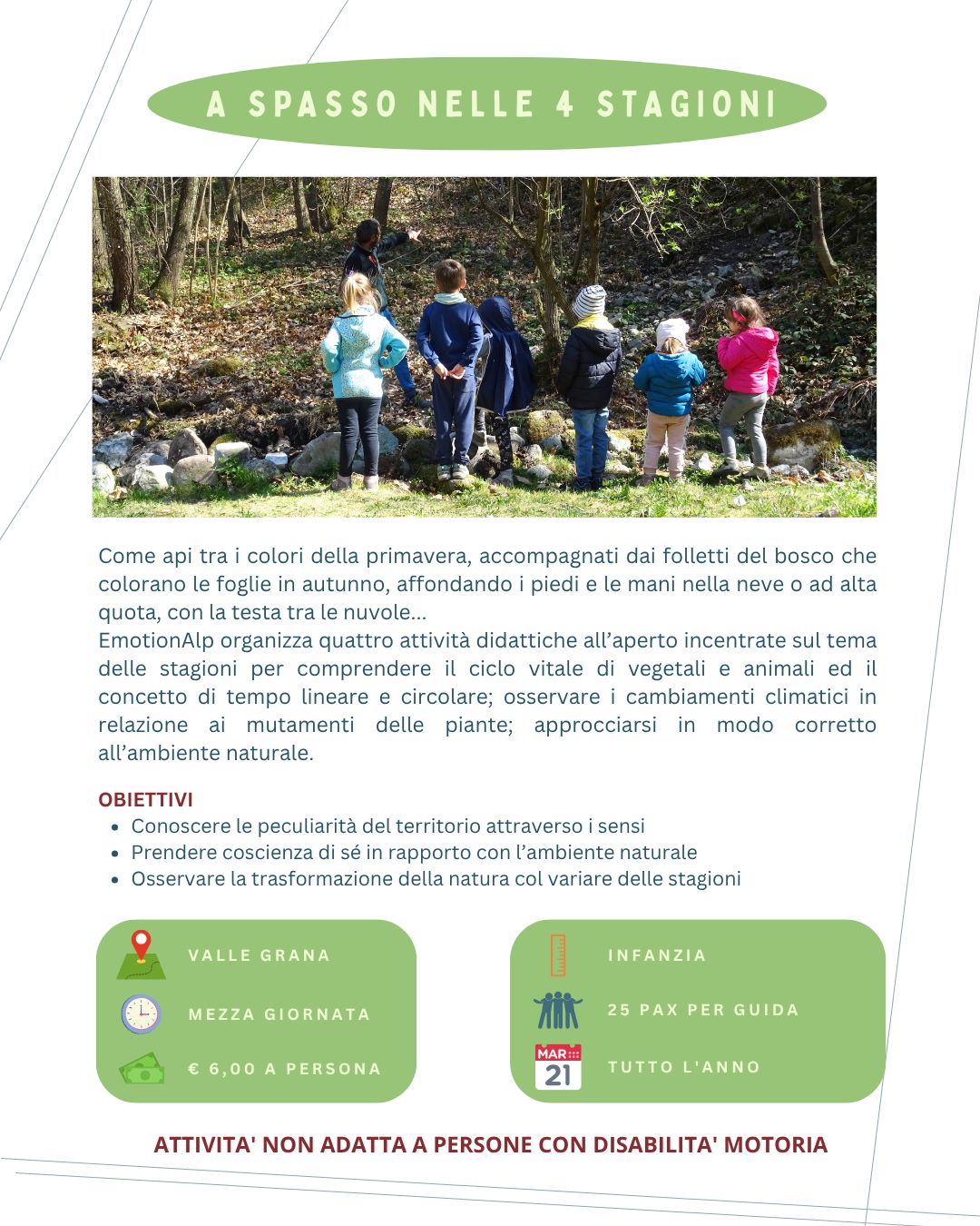 Oggi, diventati cittadini valligiani per scelta e guide per professione, vorremmo proporre ai nostri amici più piccoli la possibilità di scoprire questo territorio, spesso poco conosciuto, ma che sa trasformarsi in un eccezionale laboratorio di scoperte.