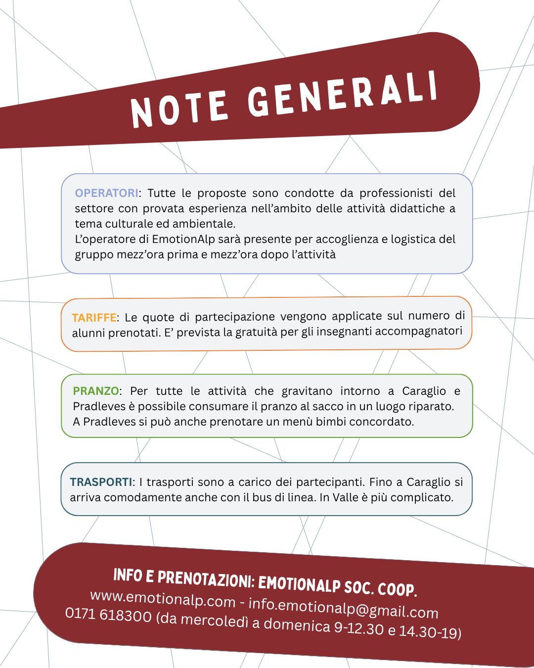 Per maggiori info e prenotazioni: info.emotionalp@gmail.com