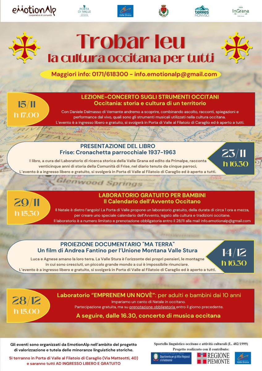 Gli eventi sono organizzati da EmotionAlp per l'Unione Montana Valle Grana nell’ambito del progetto di valorizzazione e tutela delle minoranze linguistiche storiche.